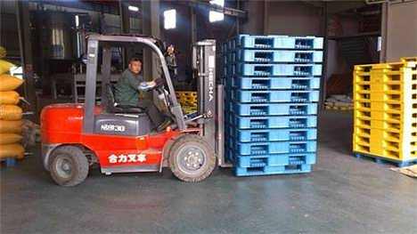 叉車是搬運塑料托盤的常用工具,常見的有人力叉車(地牛)、電動叉車,以及搬運大型托盤用的機械叉車。在使用叉車對塑料托盤進行搬運的時候應注意以下事項: